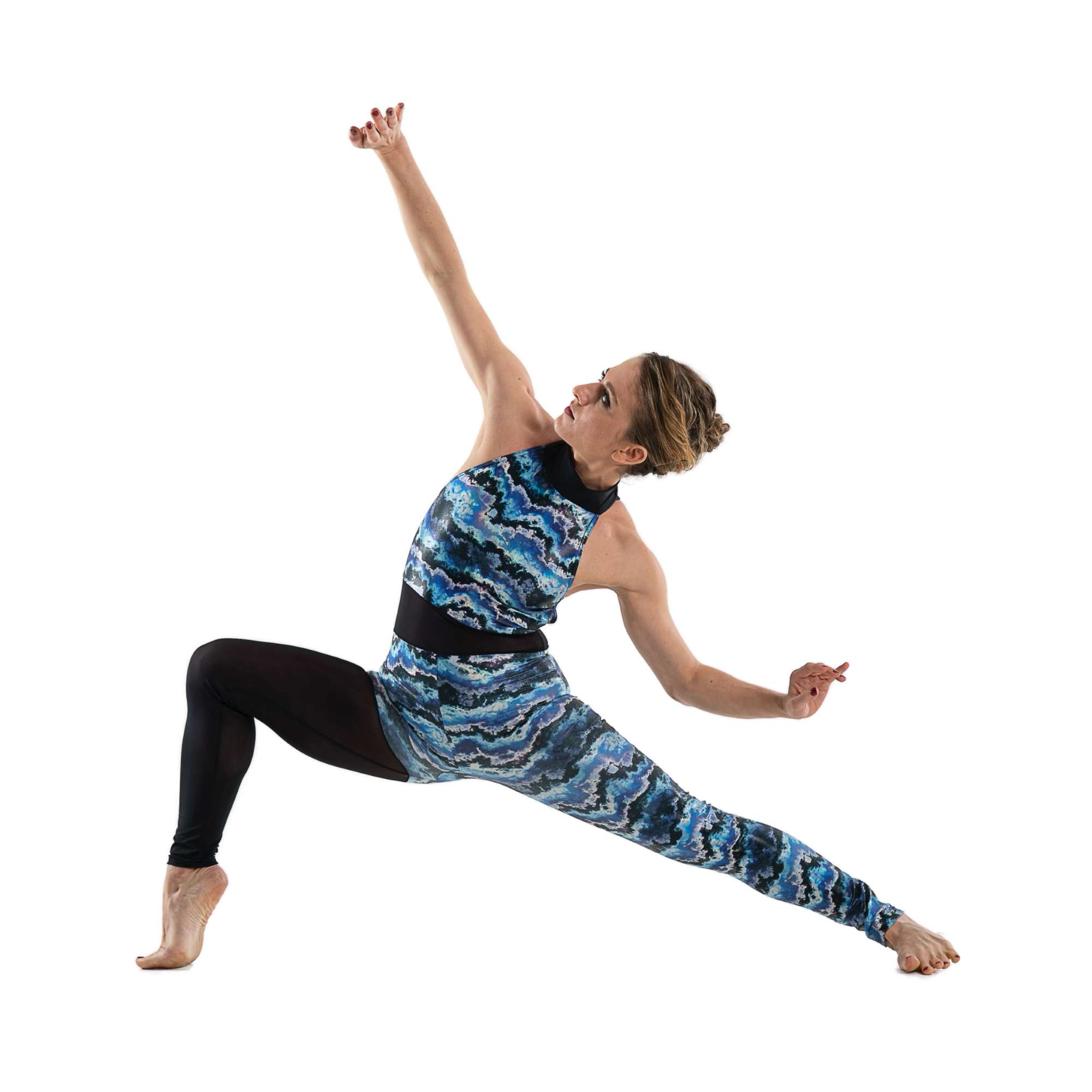 Accademico Aerial performance in lycra fantasia e monocolore con inserti in retina semitrasparente (Siviglia), scollo all’americana, spalline larghe su schiena.