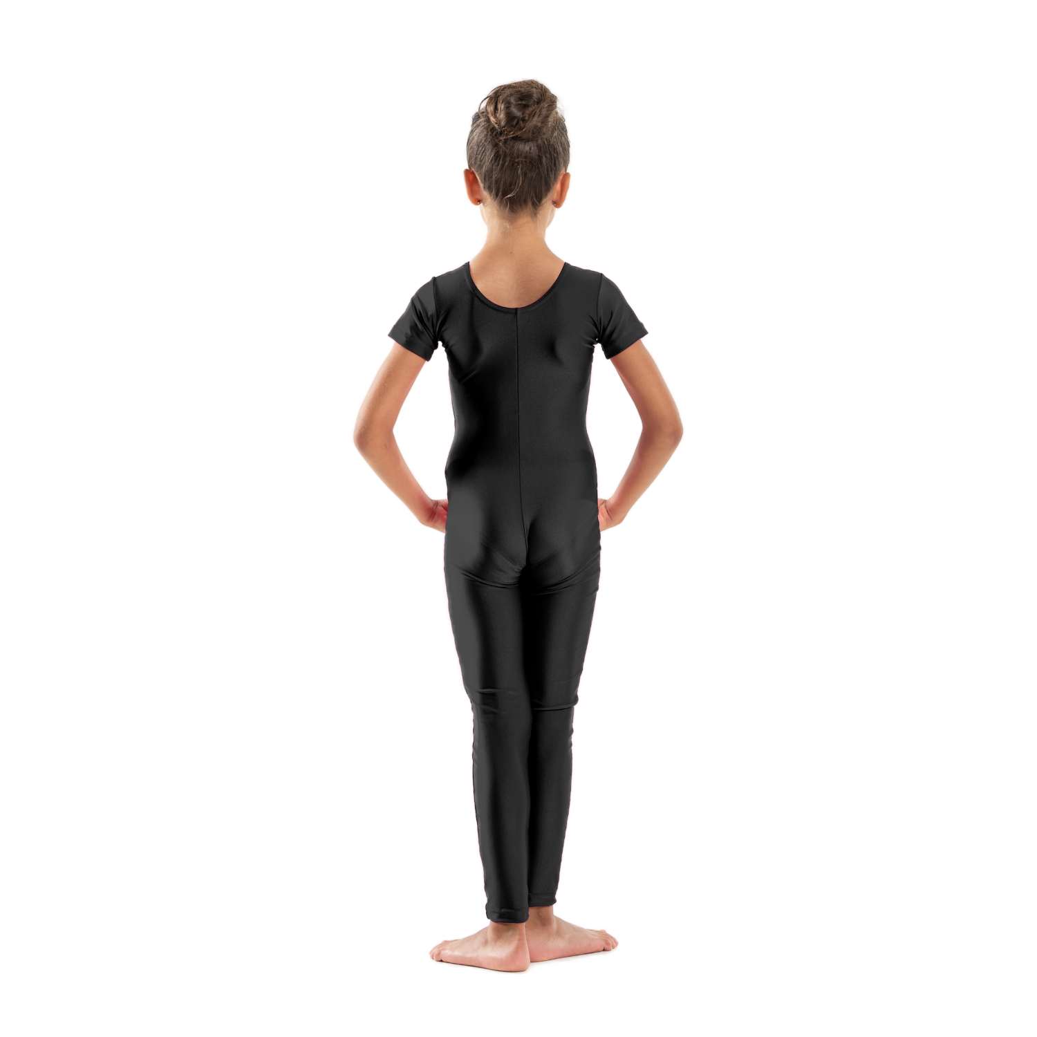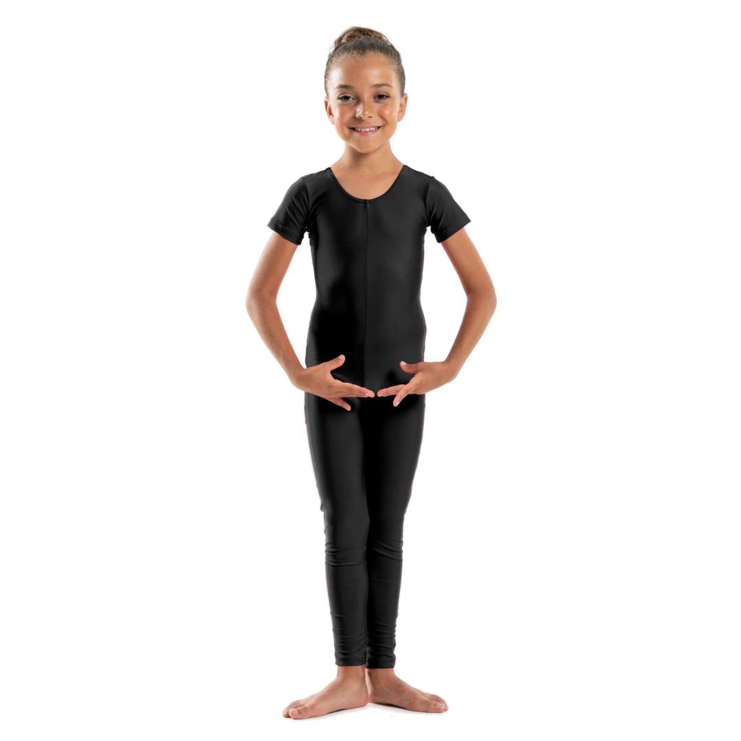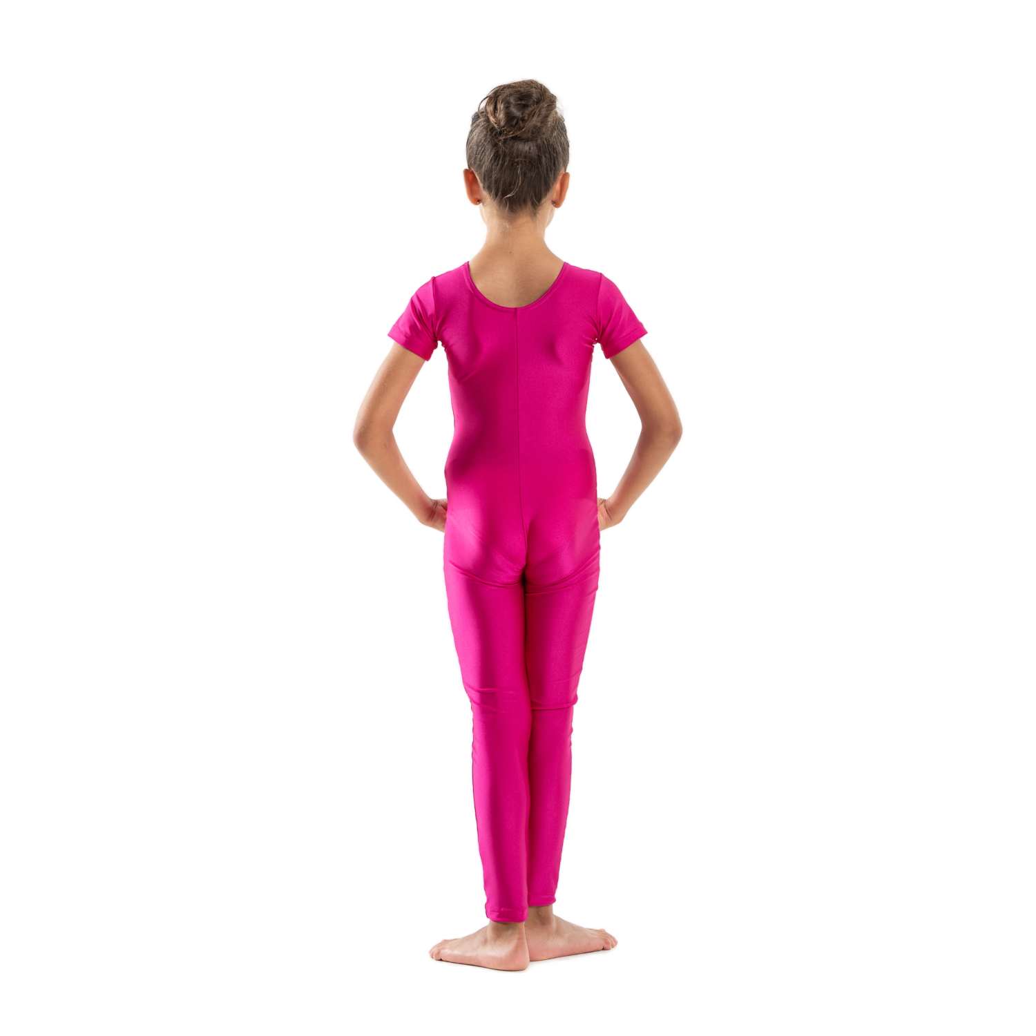 Accademico danza in lycra a maniche corte con scollo rotondo e lunghezza gambe alla caviglia.