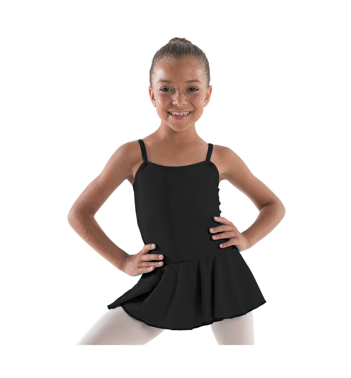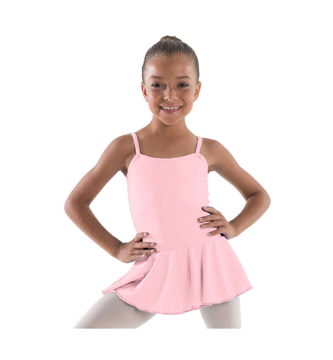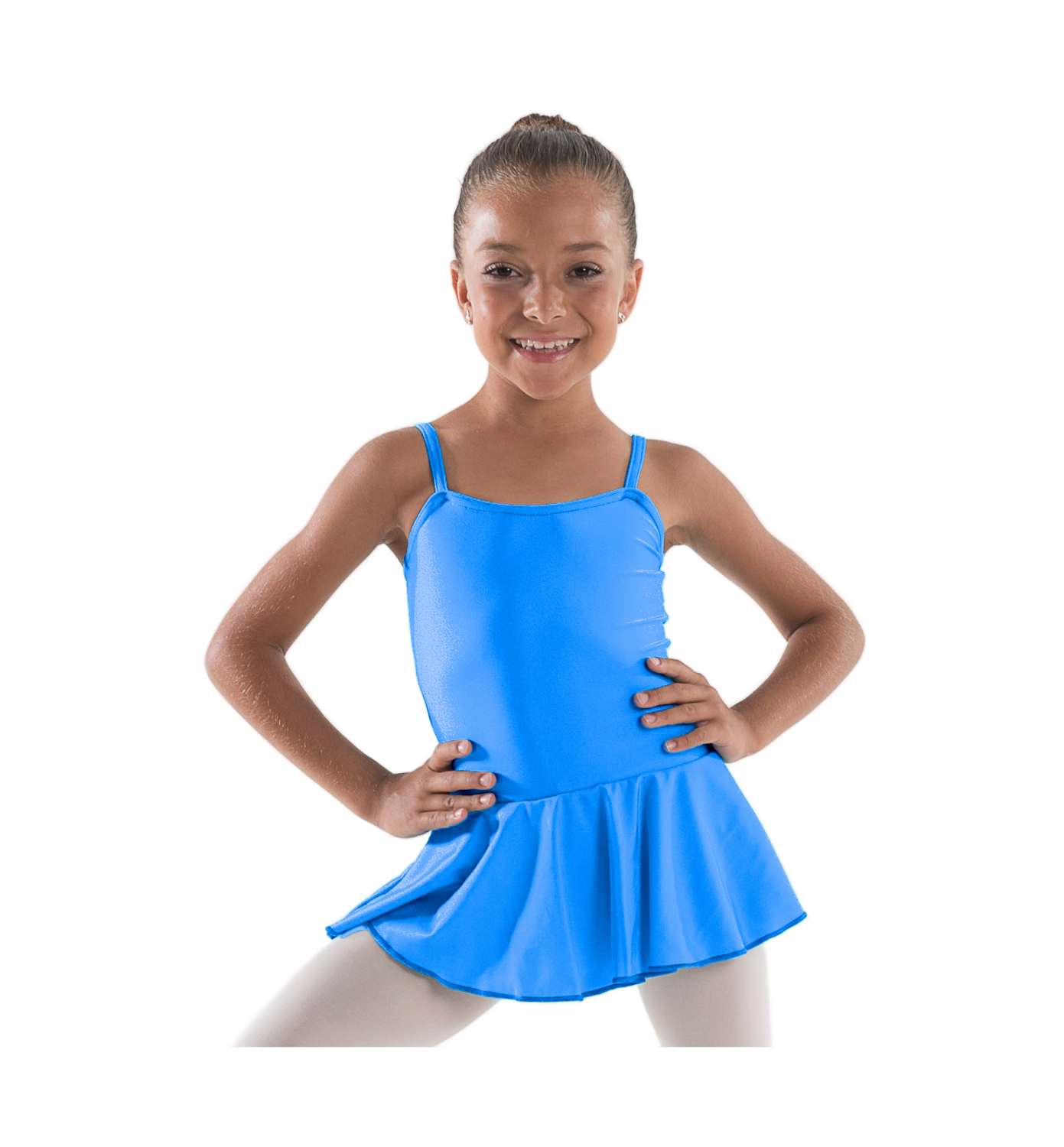Body danza classica in lycra con spalline fini e gonnellino a ruota cucito in vita.