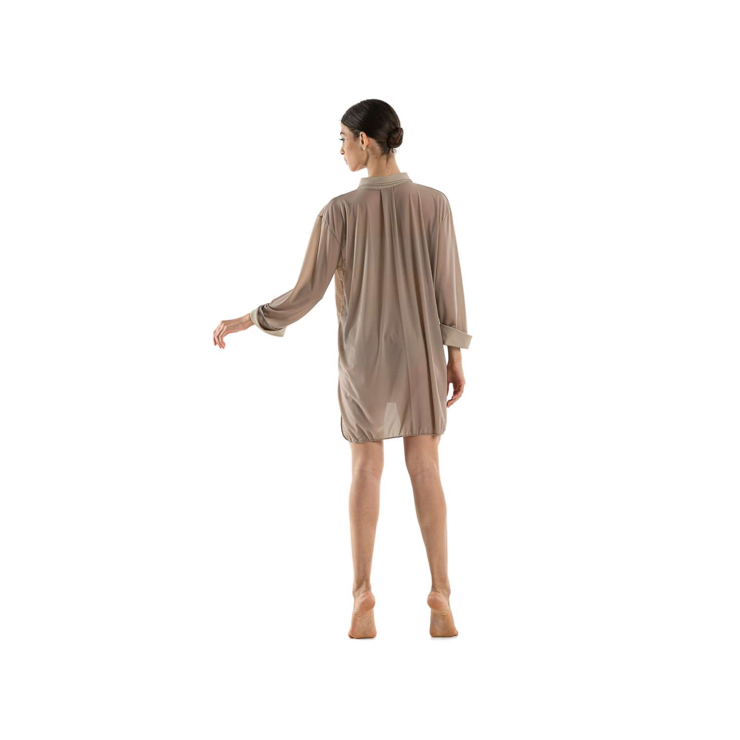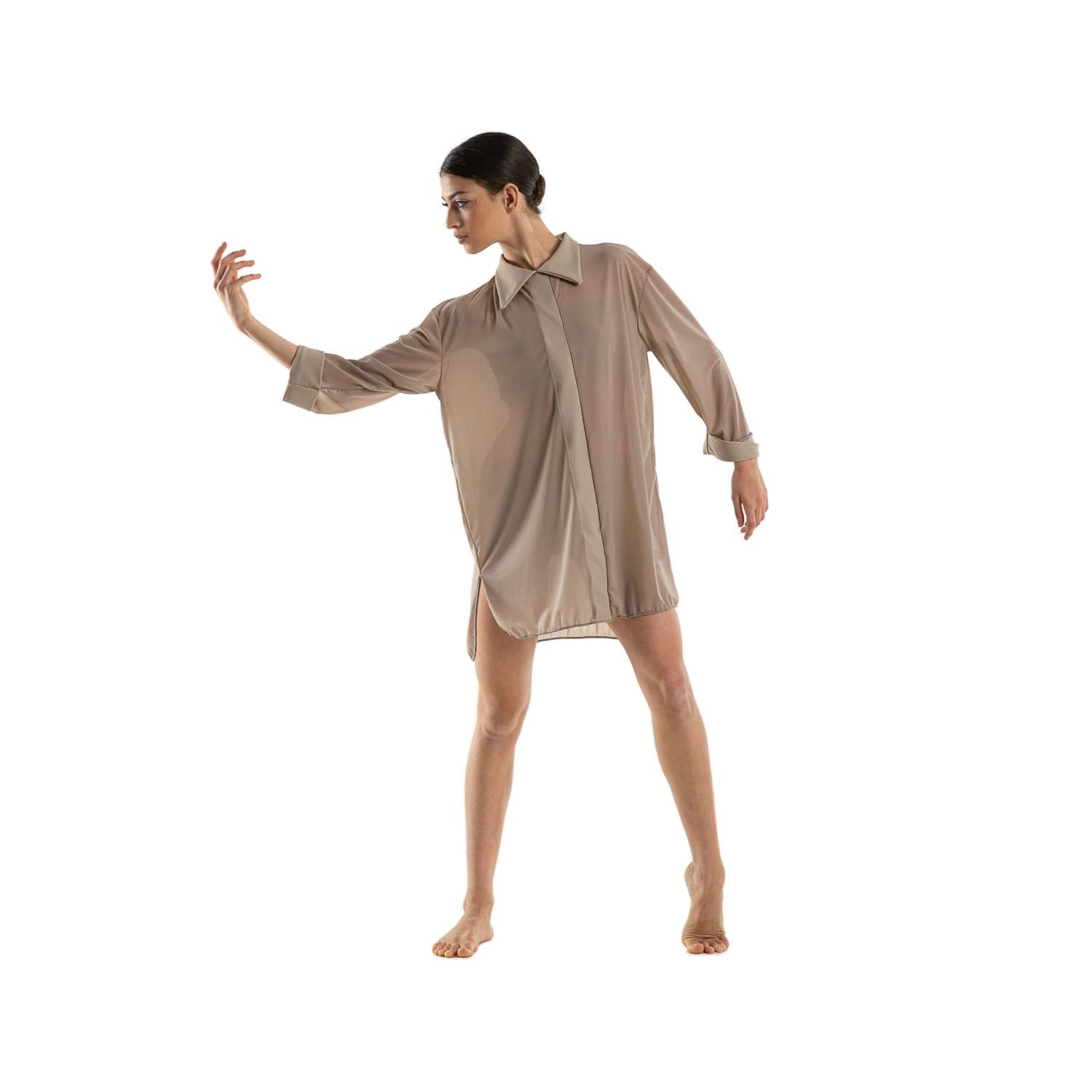 Camicia in retina semitrasparente (Siviglia) con colletto, polsini e banda centrale in lycra.