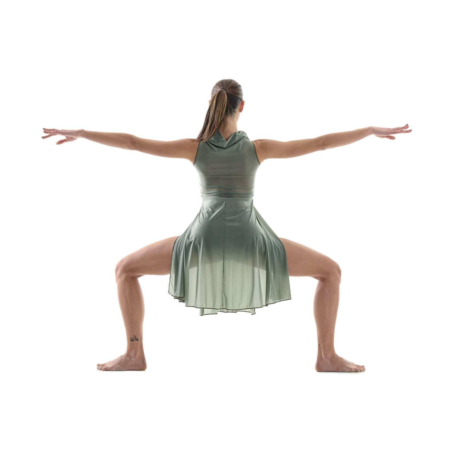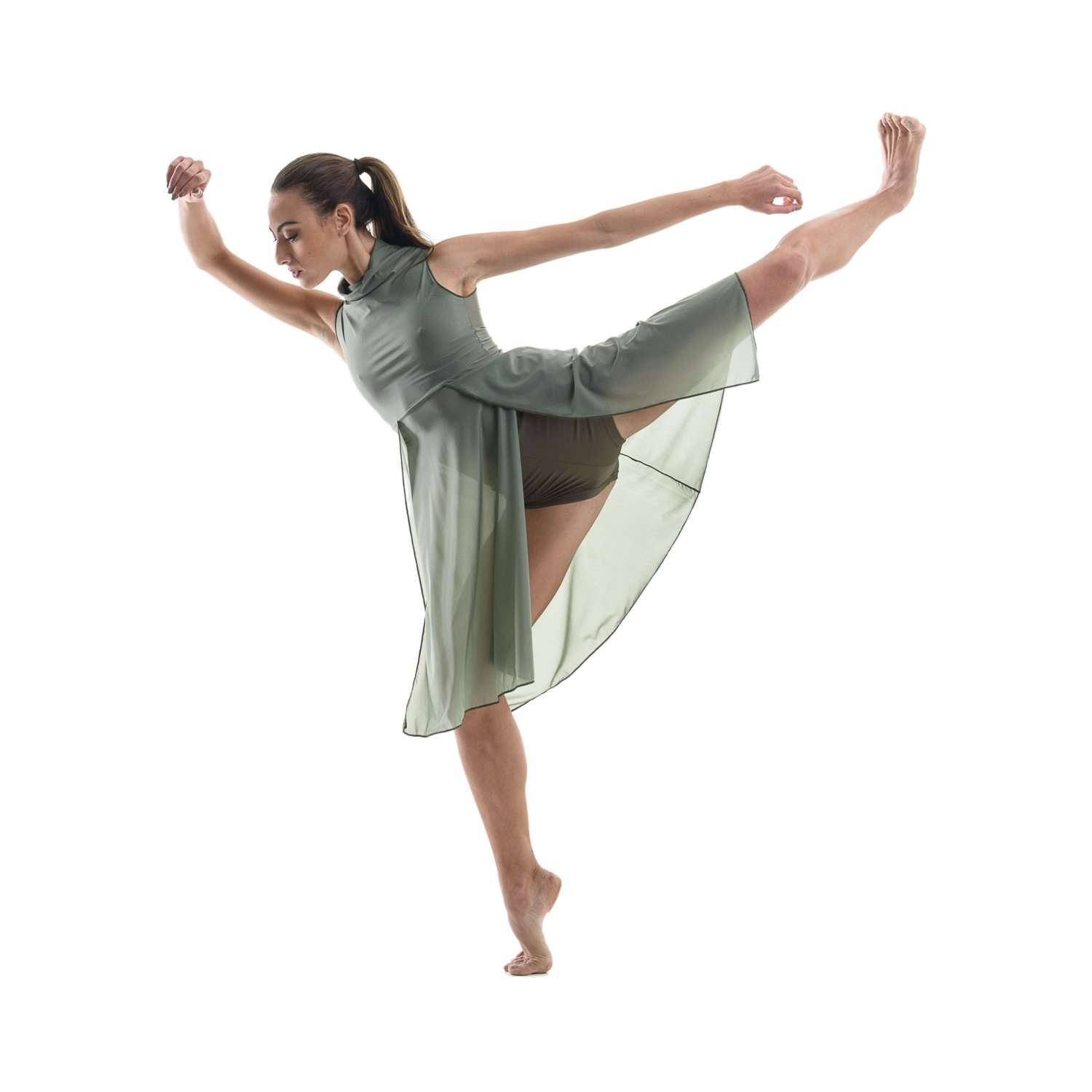 Completo composto da vestito in retina semitrasparente (Siviglia) con doppiatura sul davanti, collo alto morbido, gonna con due spacchi e da una culotte in lycra.