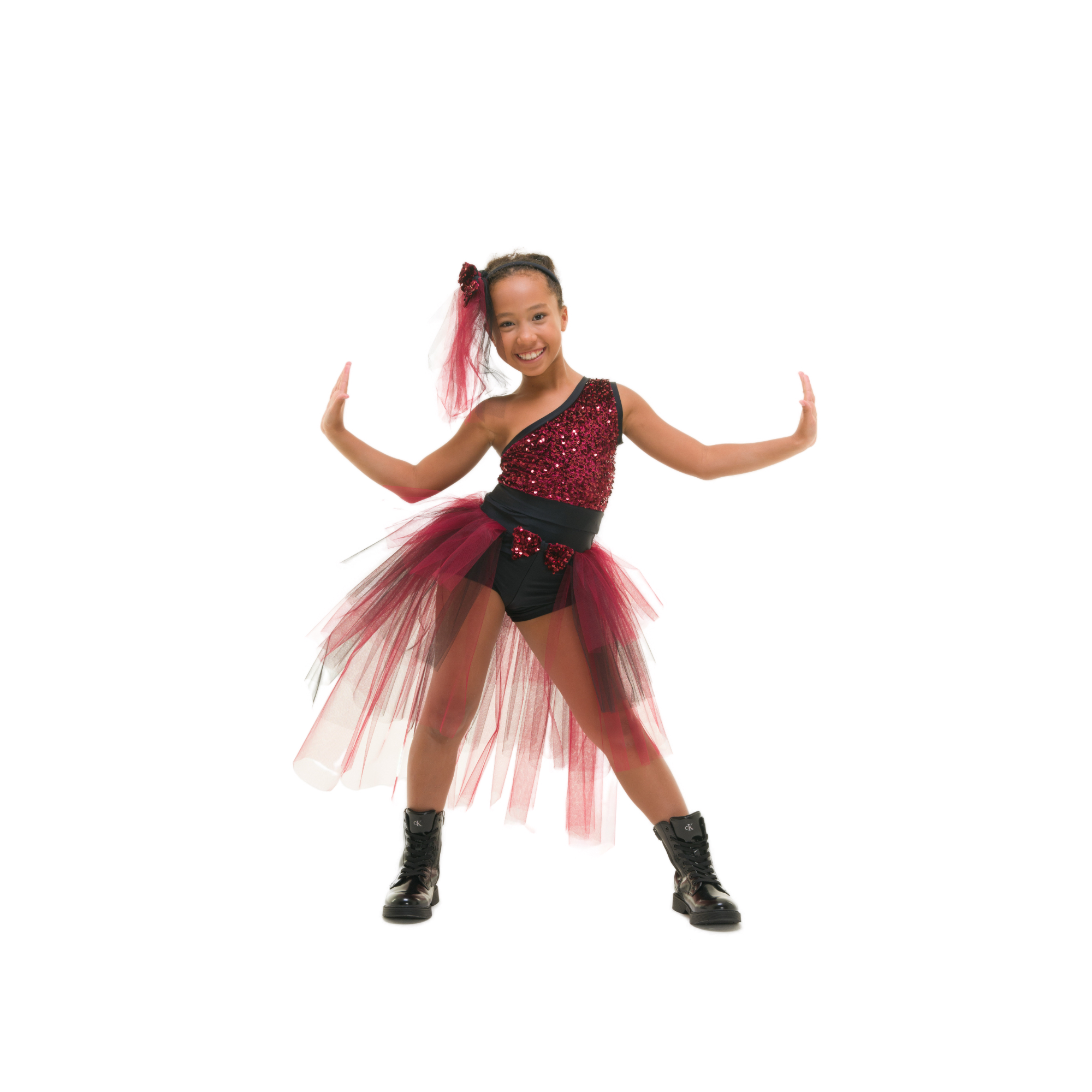 Completo composto da Gonna di tutte montata su short in lycra, 5 veli di tulle morbido bicolore scalati con apertura frontale, fiocchetto centrale in velluto paillettes. Top monospalla in velluto paillettes con bordature in lycra. ACCESSORIO: Cerchietto rivestito in lycra, fiocchetto in paillettes velluto + tulle morbido bicolore.