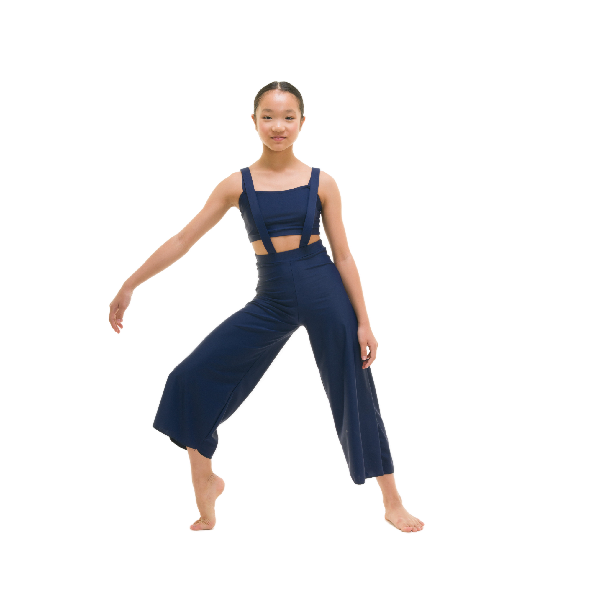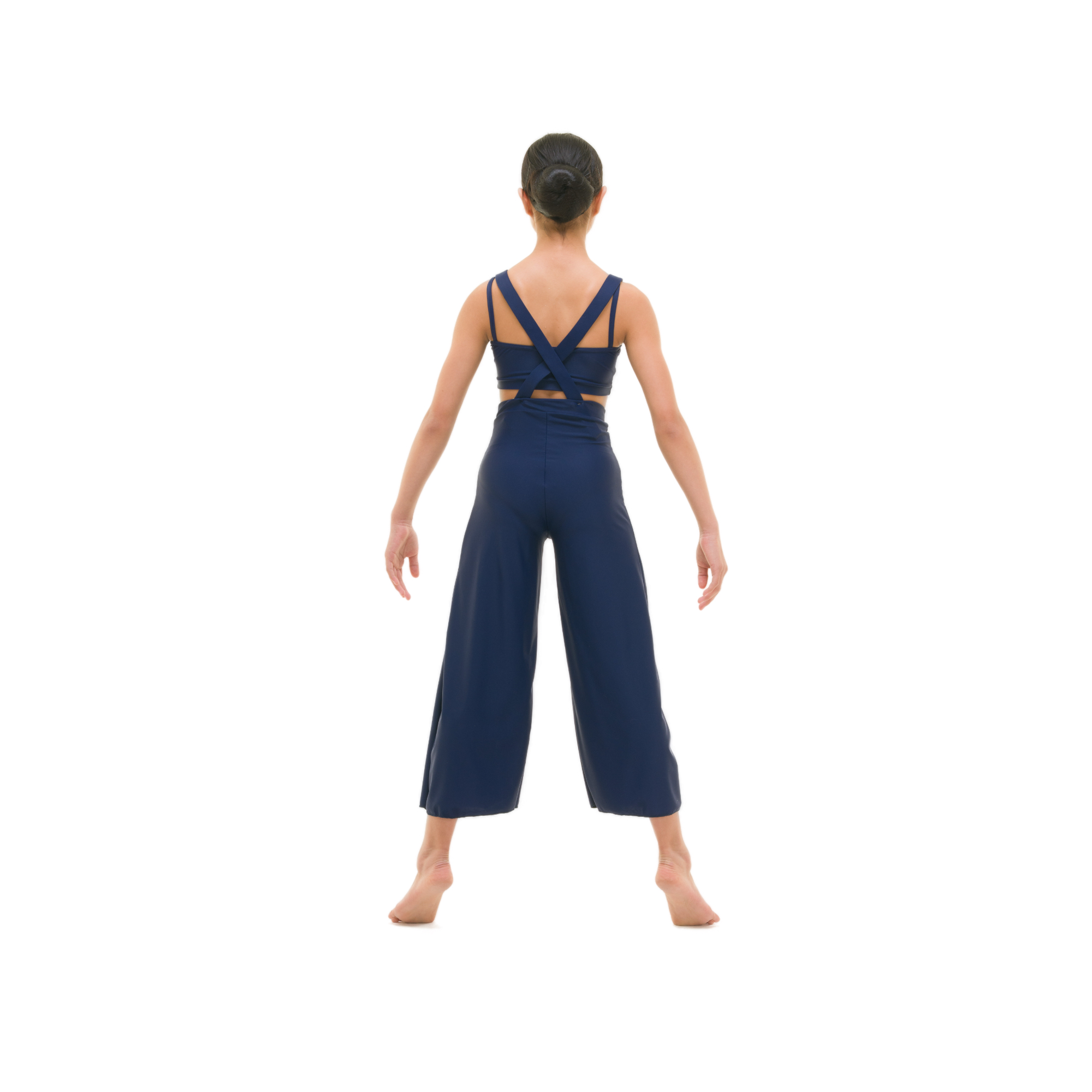 Completo composto da Top in lycra con spalline e bordino sottoseno. Pantalone in lycra , gamba svasata al fondo, bretelle insertate davanti e libere dietro per permettere la regolazione. Lunghezza sotto al polpaccio.
