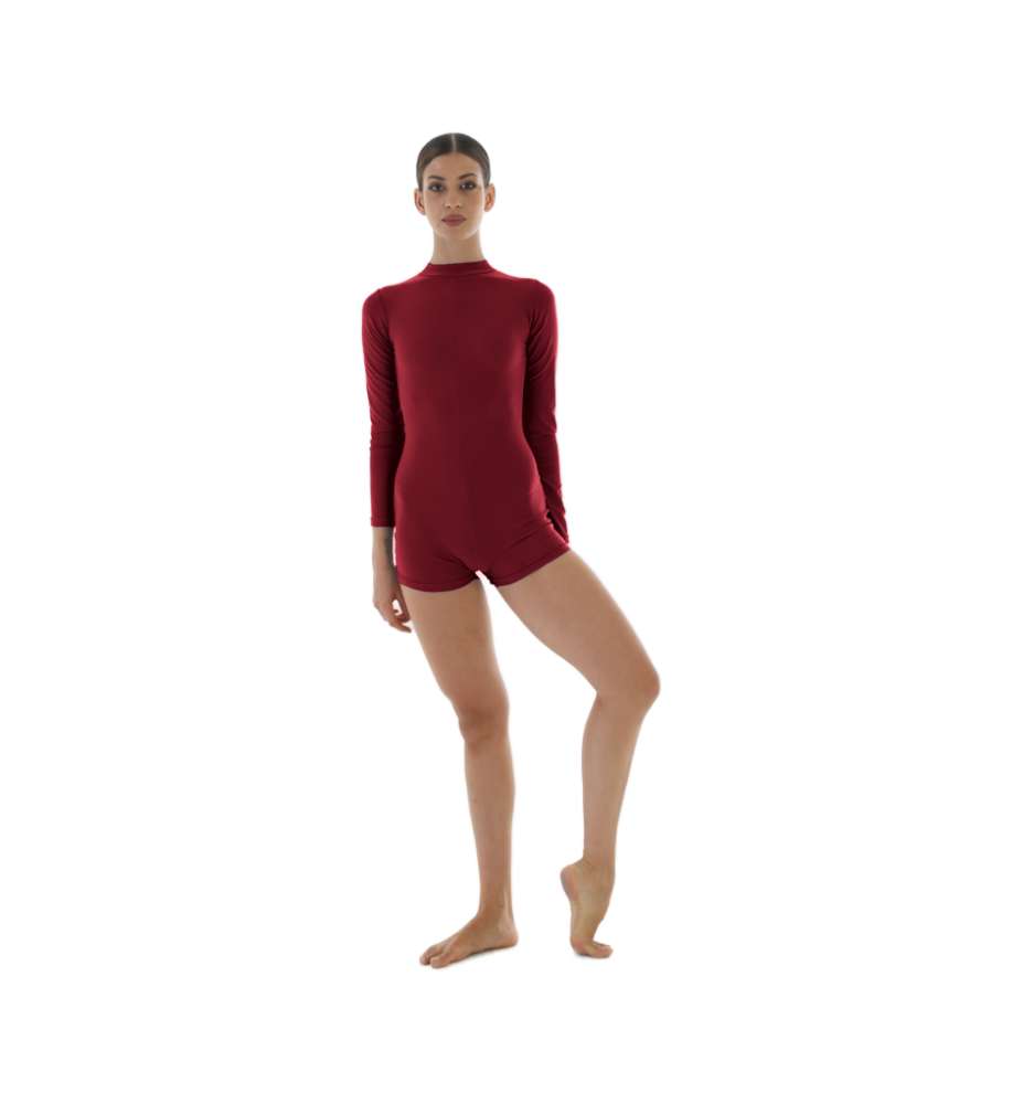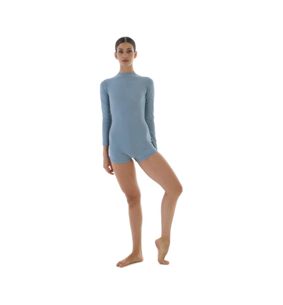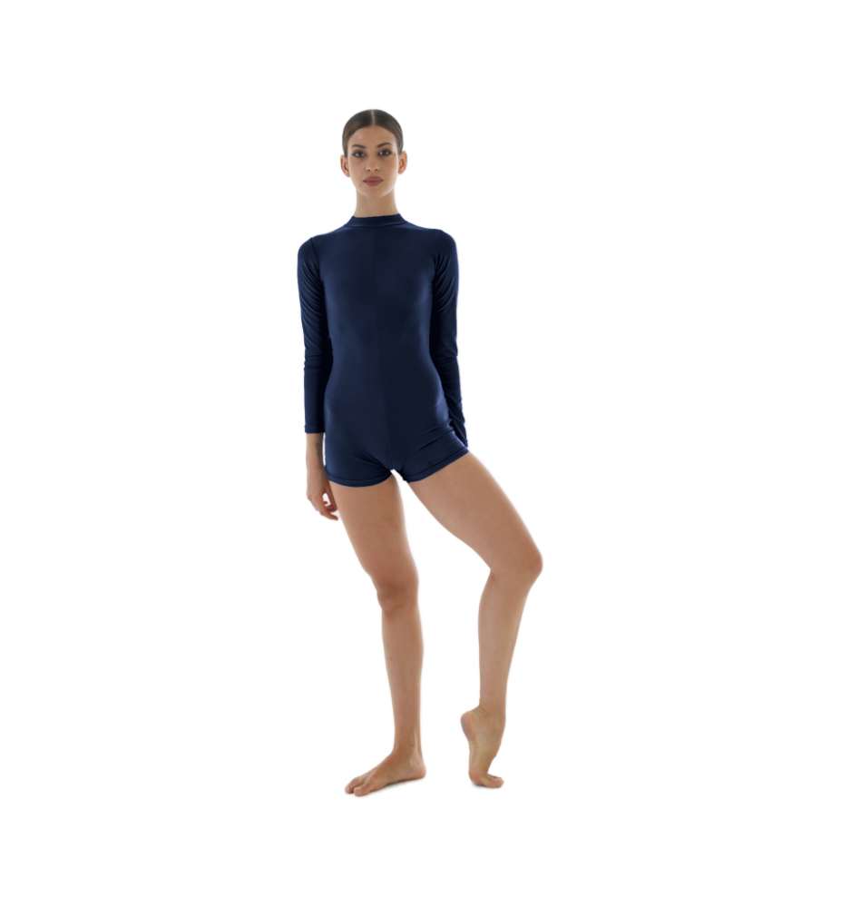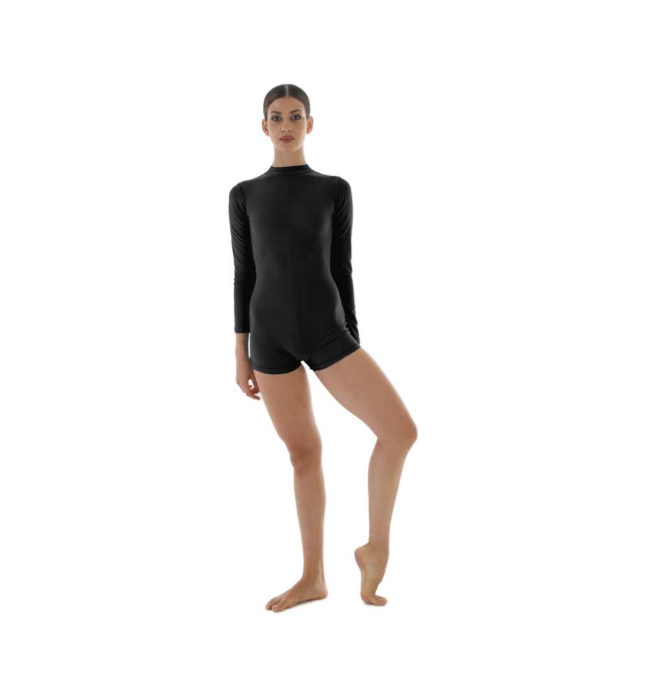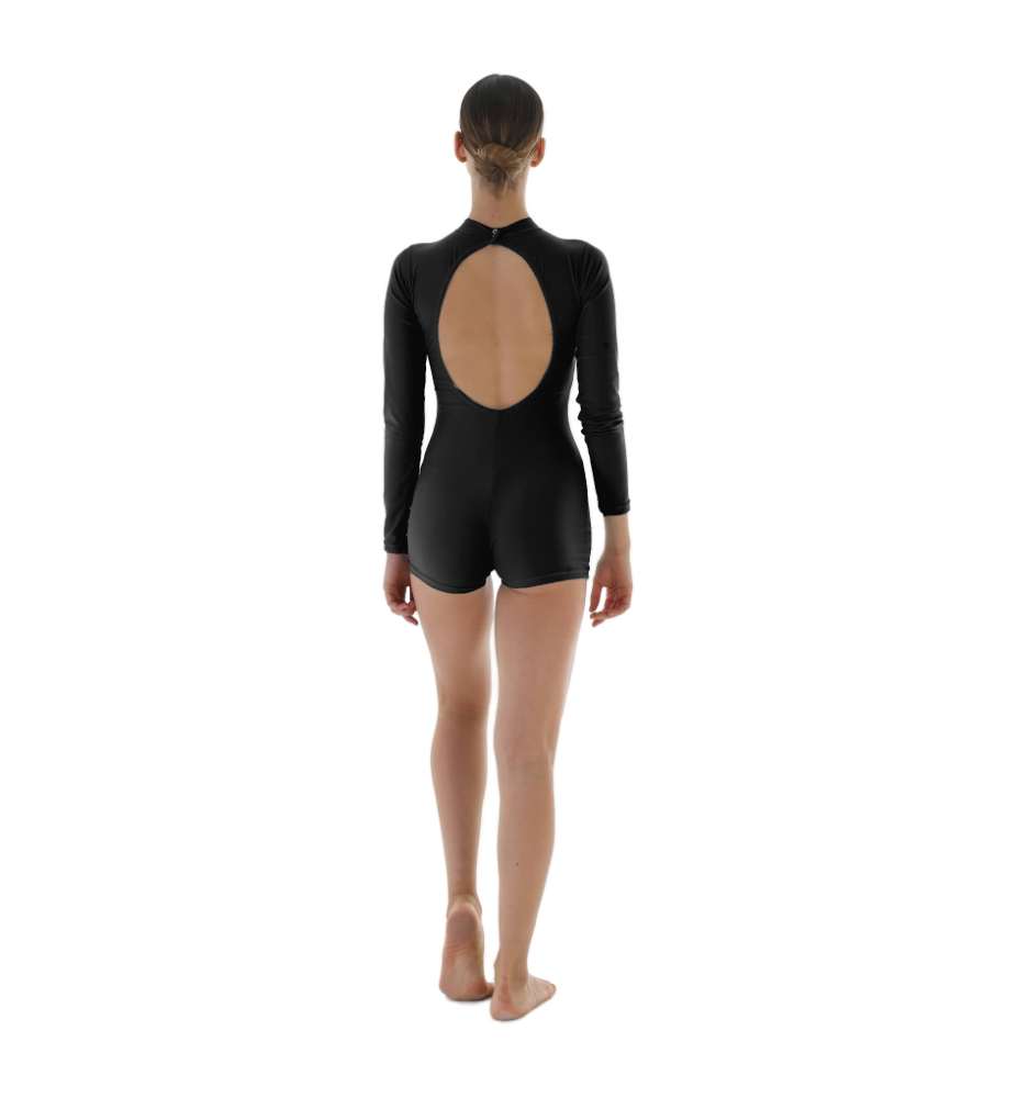 Accademico a short maniche lunghe in lycra, colletto e oblò grande dietro.