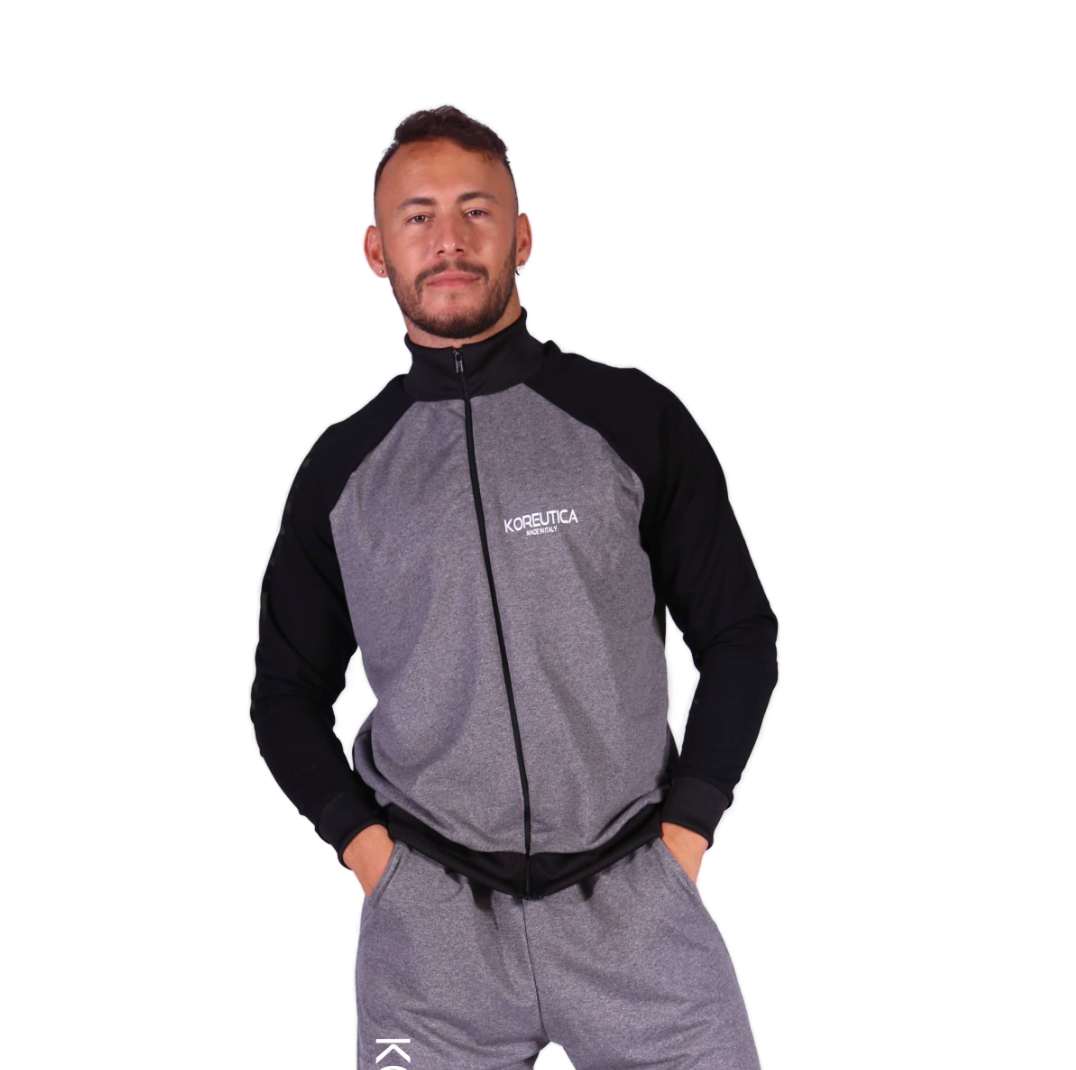 Felpa in felpina di cotone bi-eleastica con zip e colletto in tessuto costina