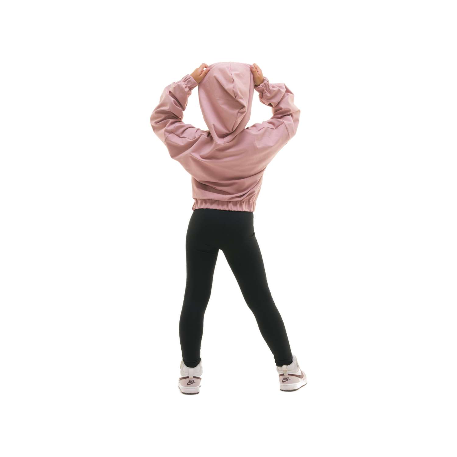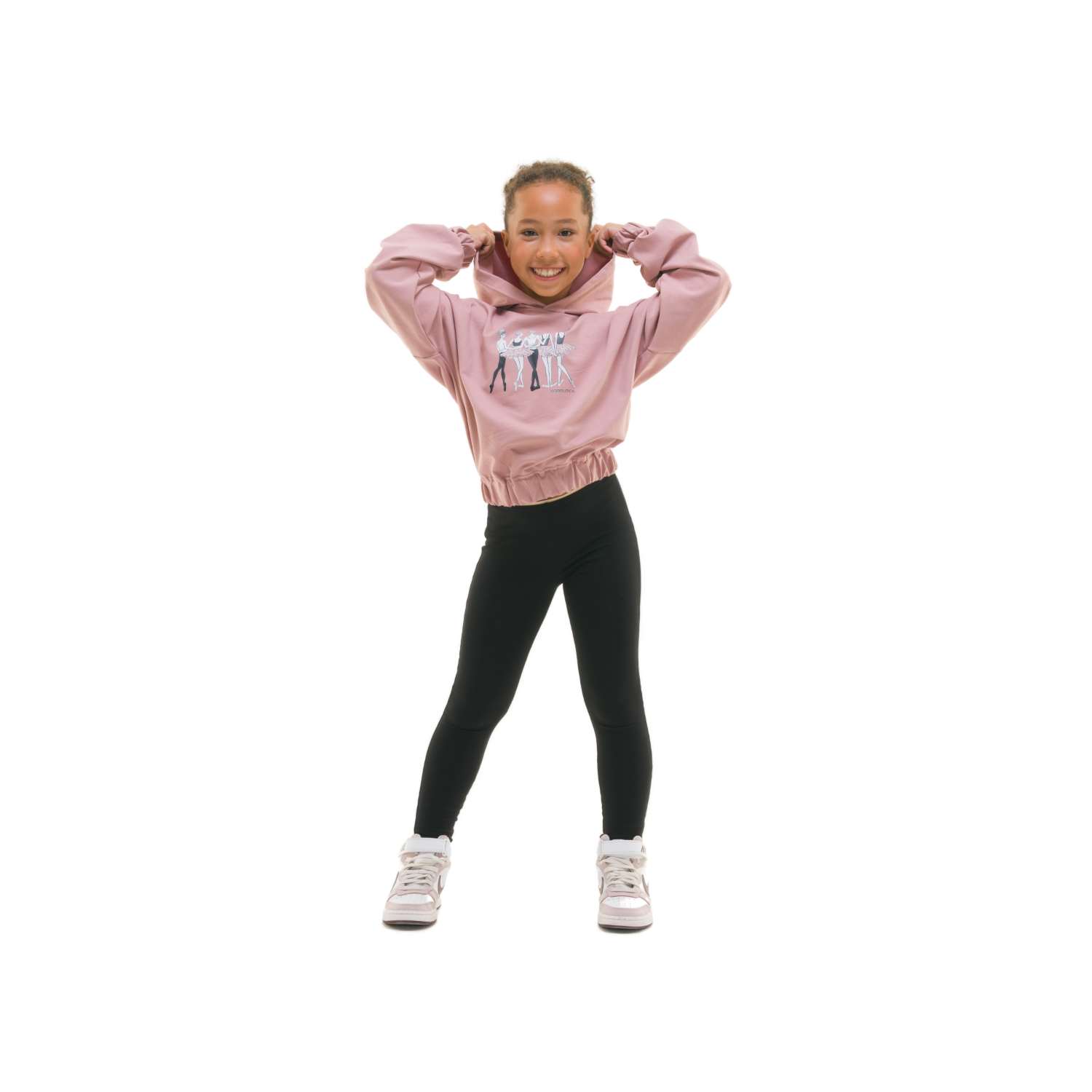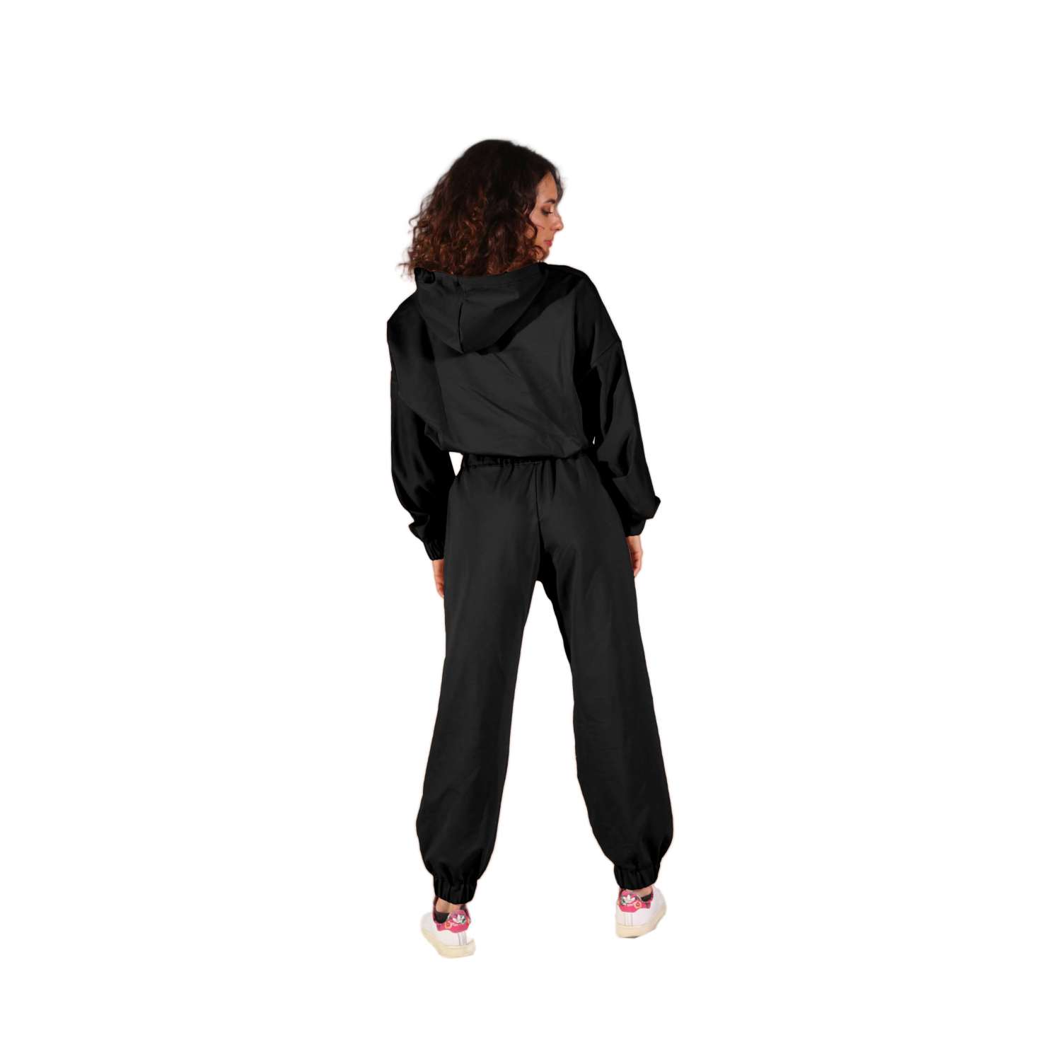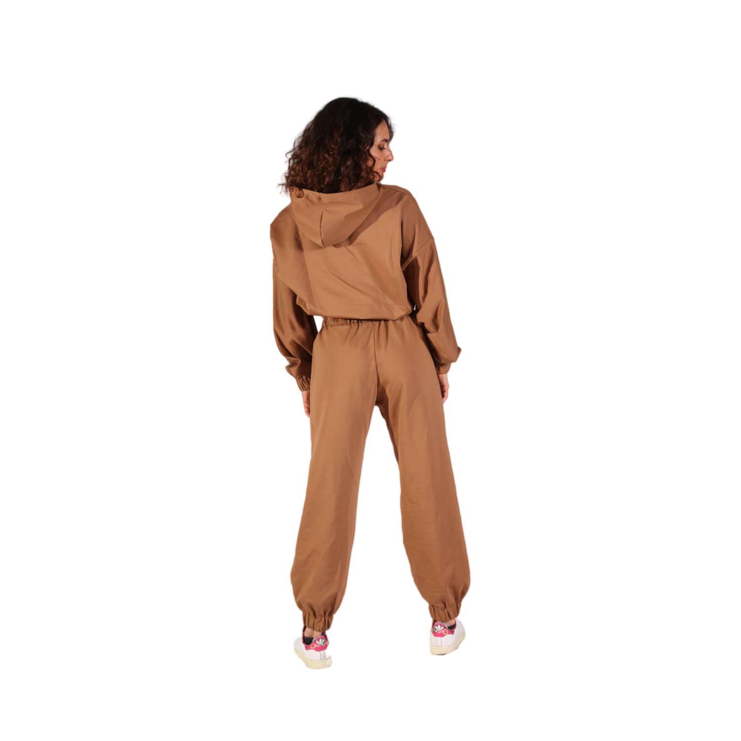 Felpa in felpina di cotone bi-eleastica con cappuccio, maniche lunghe con spalla scesa e rifiniture con elastico alto 4 cm.