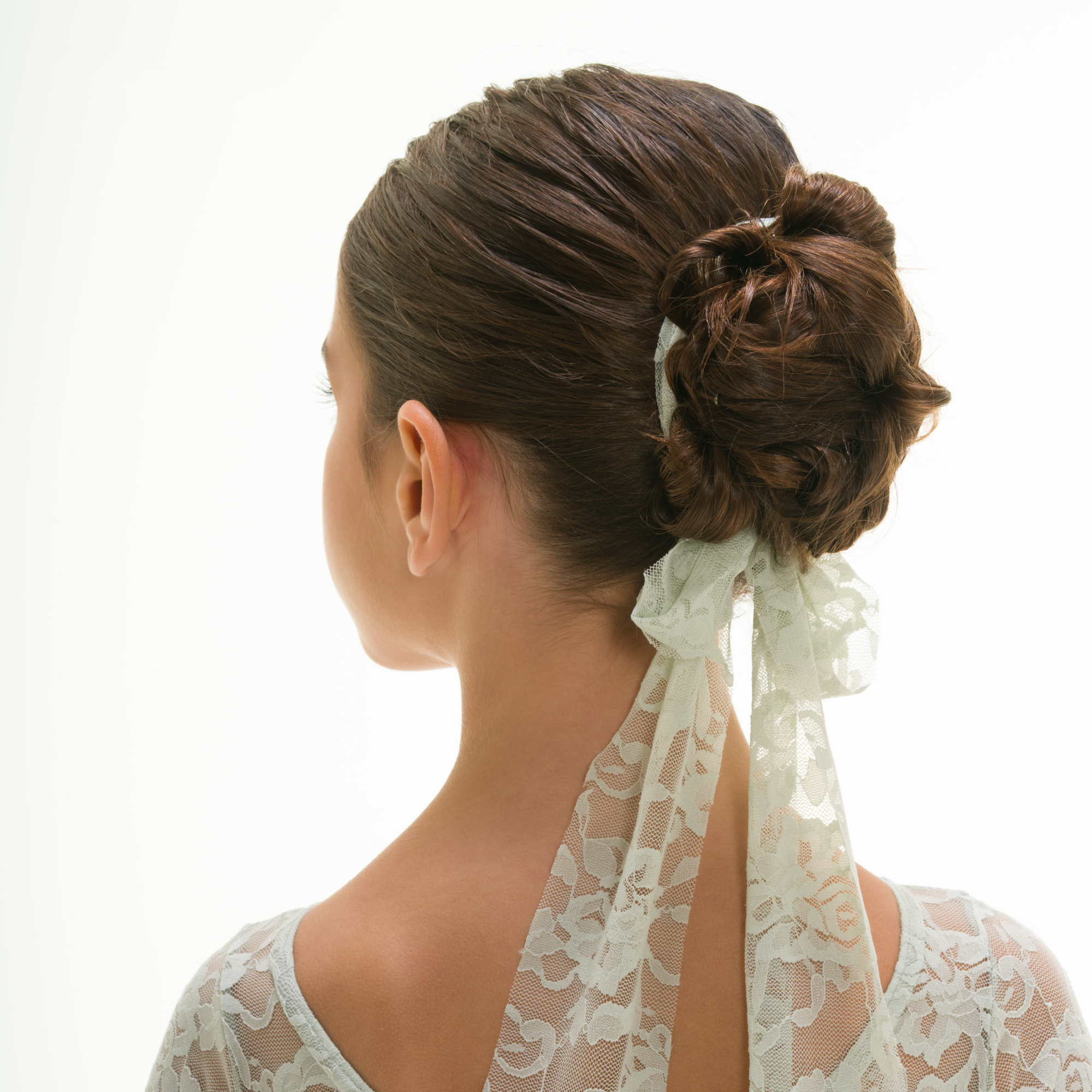 ACCESSORIO: Striscia di pizzo da legare attorno allo chignon.