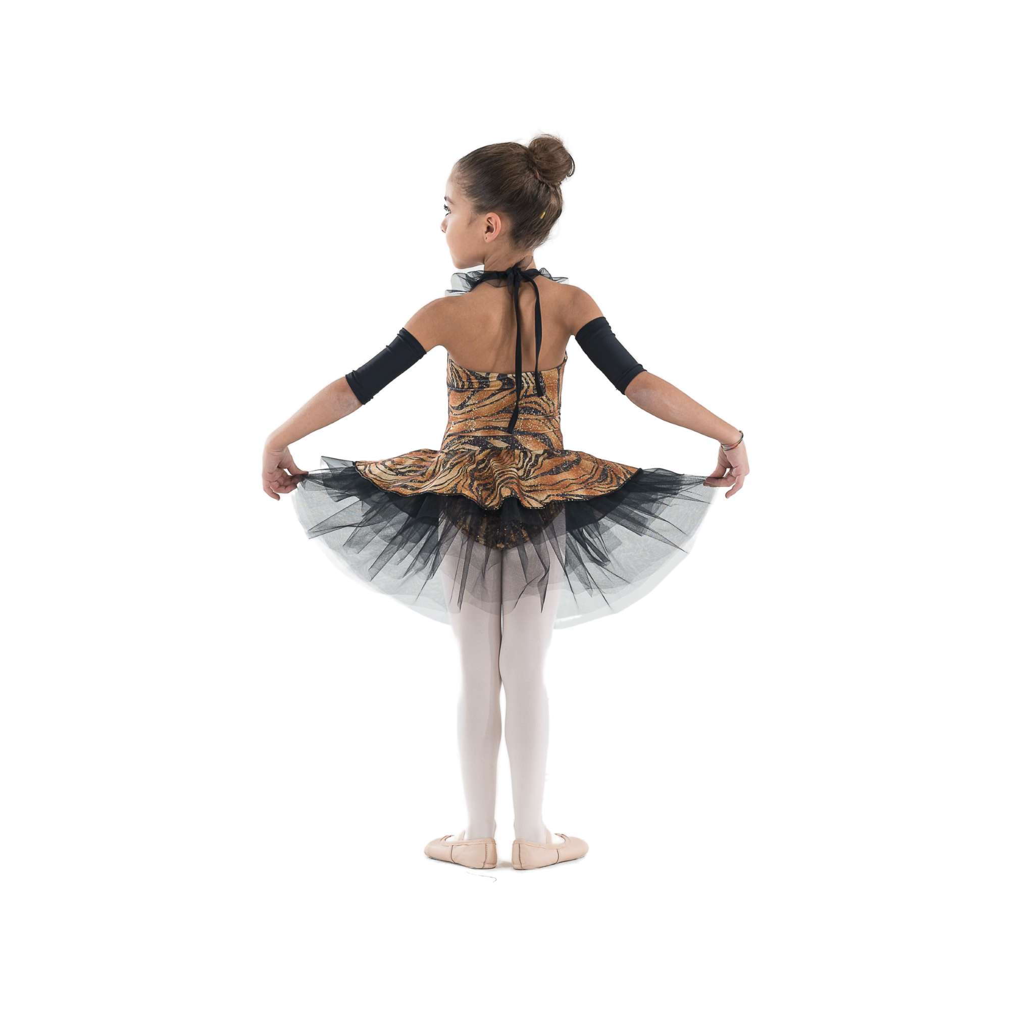 Tutù composto da body con gonnellino in lycra fantasia e tutù con 2 veli di tulle morbido e 1 velo di retina.