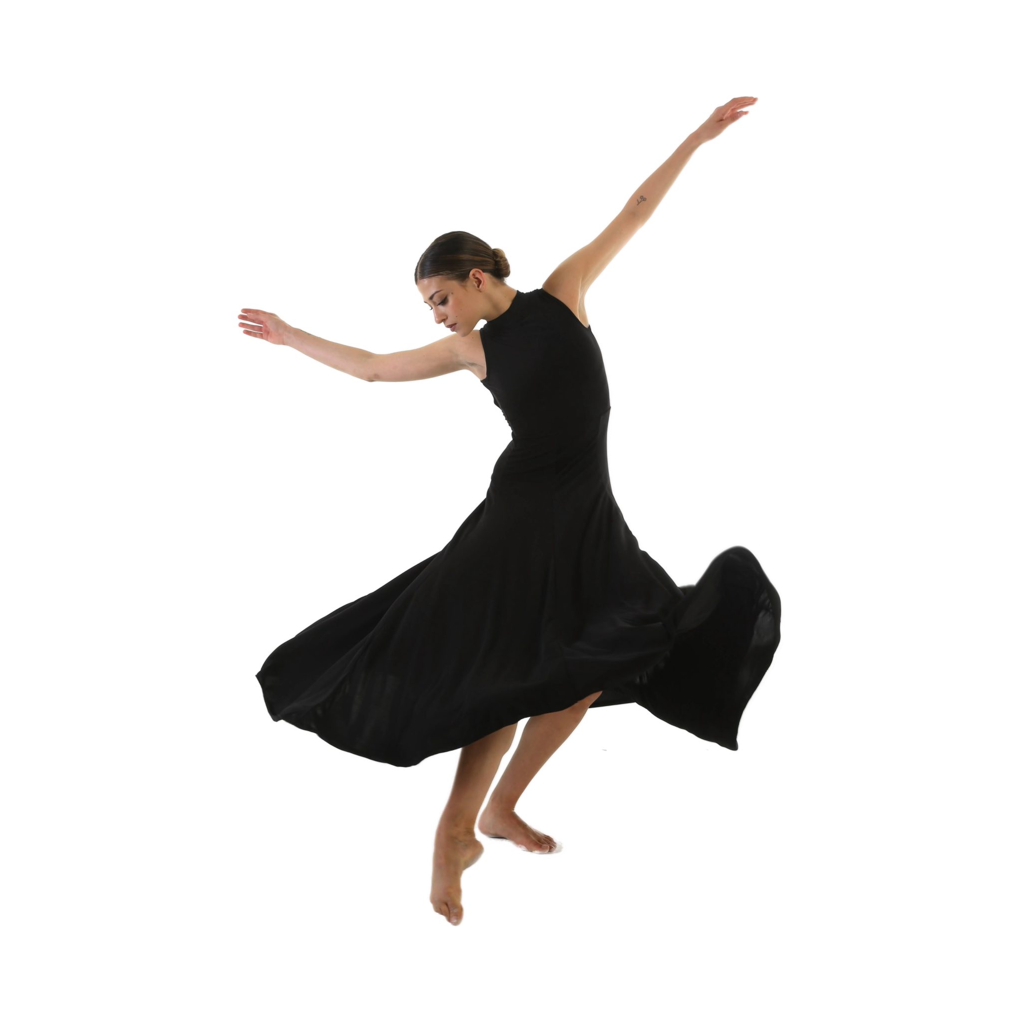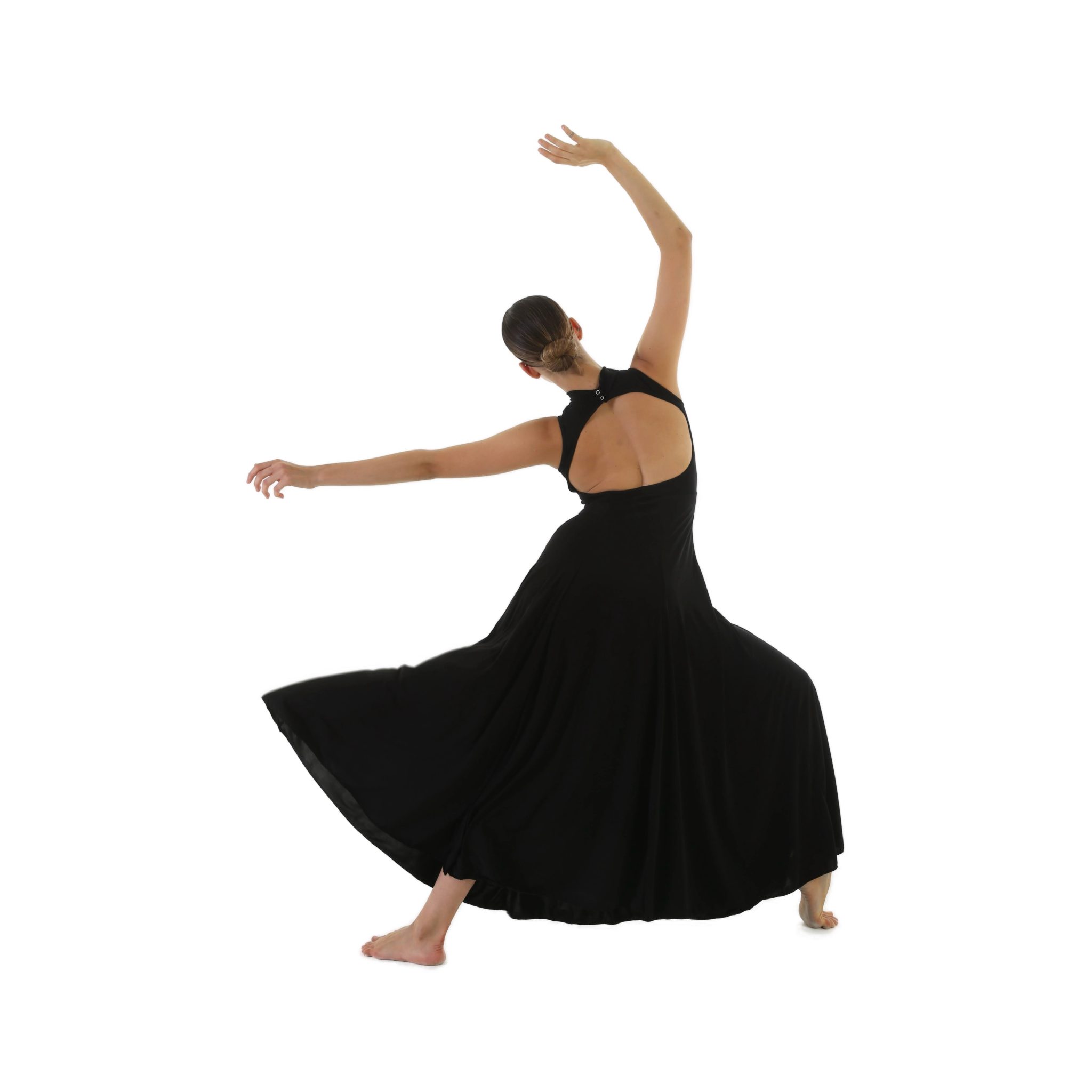 Vestito in maglina di cotone morbida smanicato con colletto e schiena nuda, gonna ampia lunghezza alla caviglia a telini.